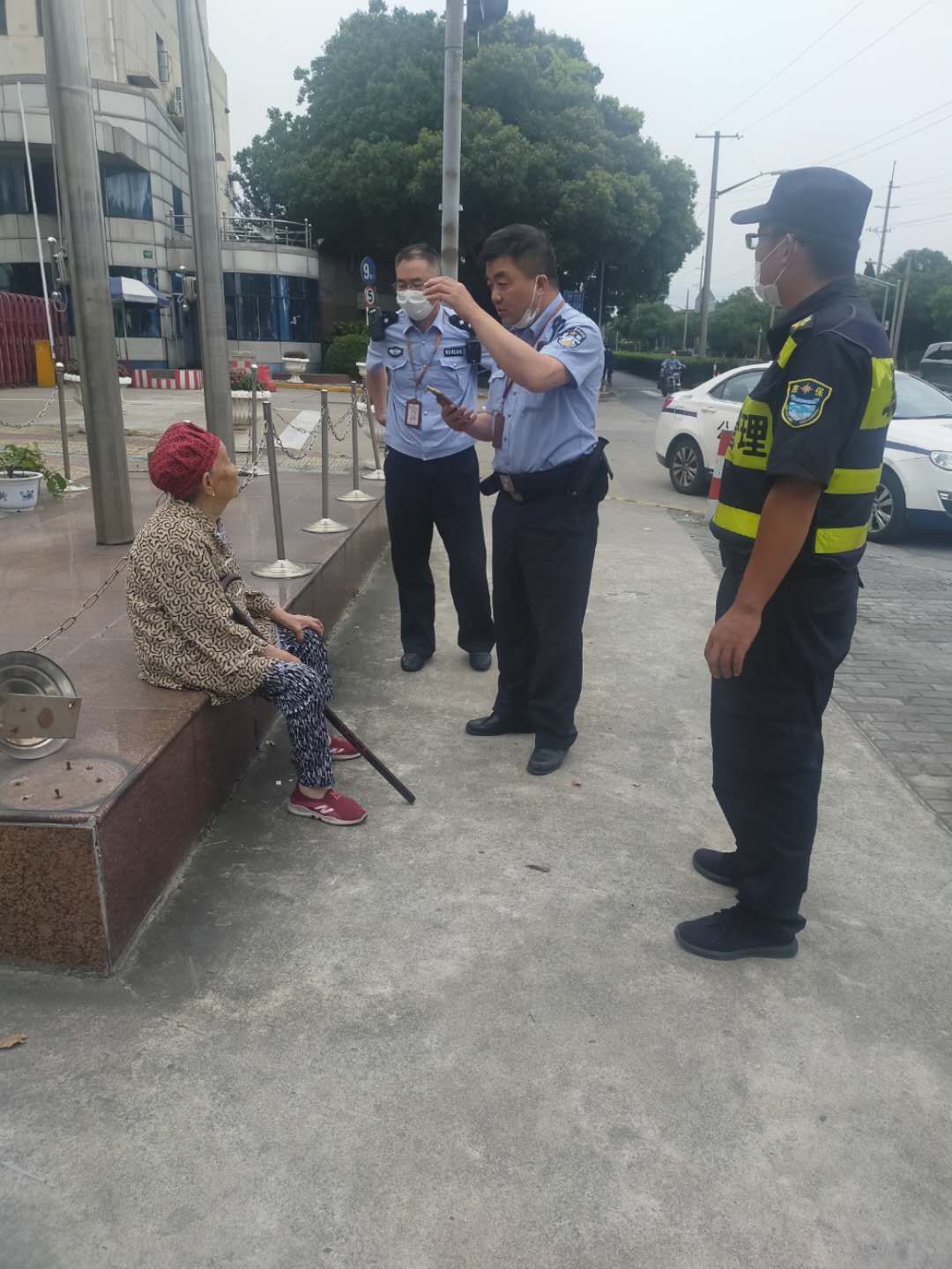7月7日18:00,宗保公司駐高橋市容項目隊員王金齊、李少秋巡邏至浦東北路花山路時(shí),看到一位老阿姨在機動(dòng)車(chē)道上徘徊,眼神還有些許驚慌。