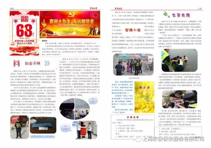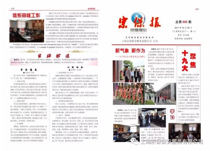 上海宗保保安服務(wù)有限公司企業(yè)文化報《宗保報》從創(chuàng )刊至今已出版兩期了,終于有了一份自己企業(yè)的報紙,可以報道身邊的人和事,讓大家精神生活有了一份希望、期盼和寄托,因此受到公司員工的喜愛(ài),并得到很多人的踴躍投稿,作為編者,這樣的一份初衷得以達成,心中感受到莫大的鼓舞和欣喜,同時(shí)也感受到了一份沉甸甸的責任——那就是堅持辦下去的信念,并且要將質(zhì)量越辦越好。