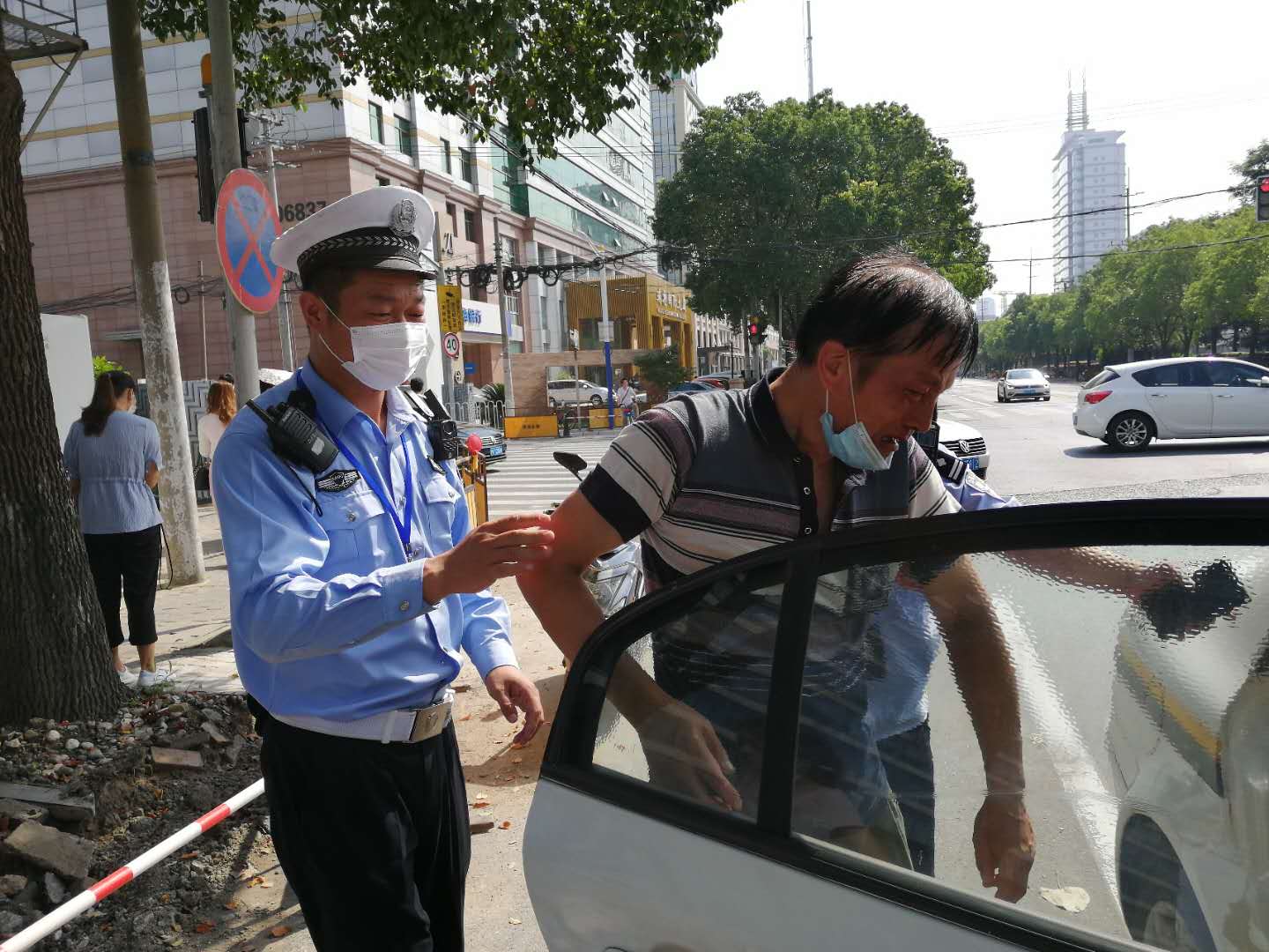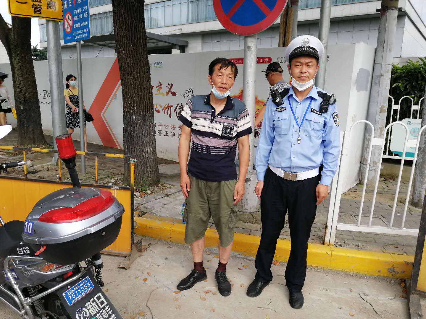 7月23日8:38,虹橋交警輔助項目機動(dòng)巡邏組隊員王學(xué)峰、朱偉偉在宜山路萬(wàn)源路路口巡邏時(shí),遇到一名失憶老人求助。