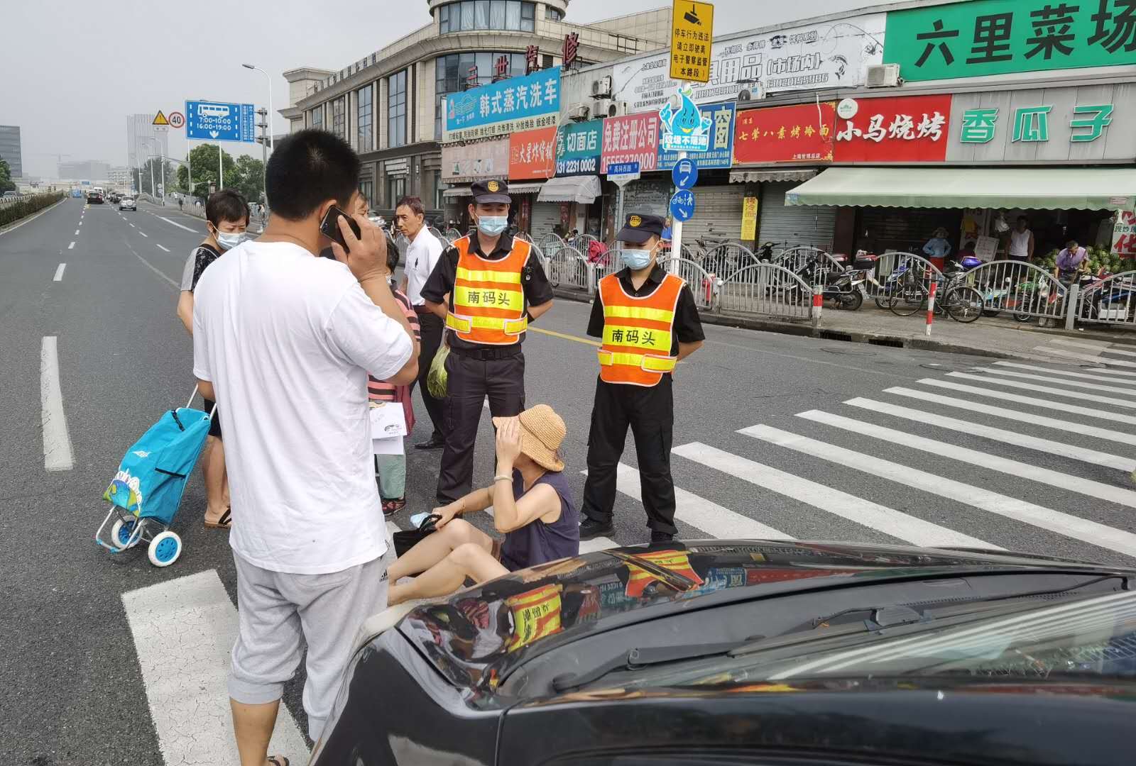 7月21日10點(diǎn)左右,南碼頭市容項目隊員劉輝、方可杰在高科西路蒲三路交叉口執勤時(shí),路口突發(fā)一起交通事故,一名行人被轎車(chē)撞傷。兩名隊員立即上前詢(xún)問(wèn)傷者情況,幫助傷者聯(lián)系家人。