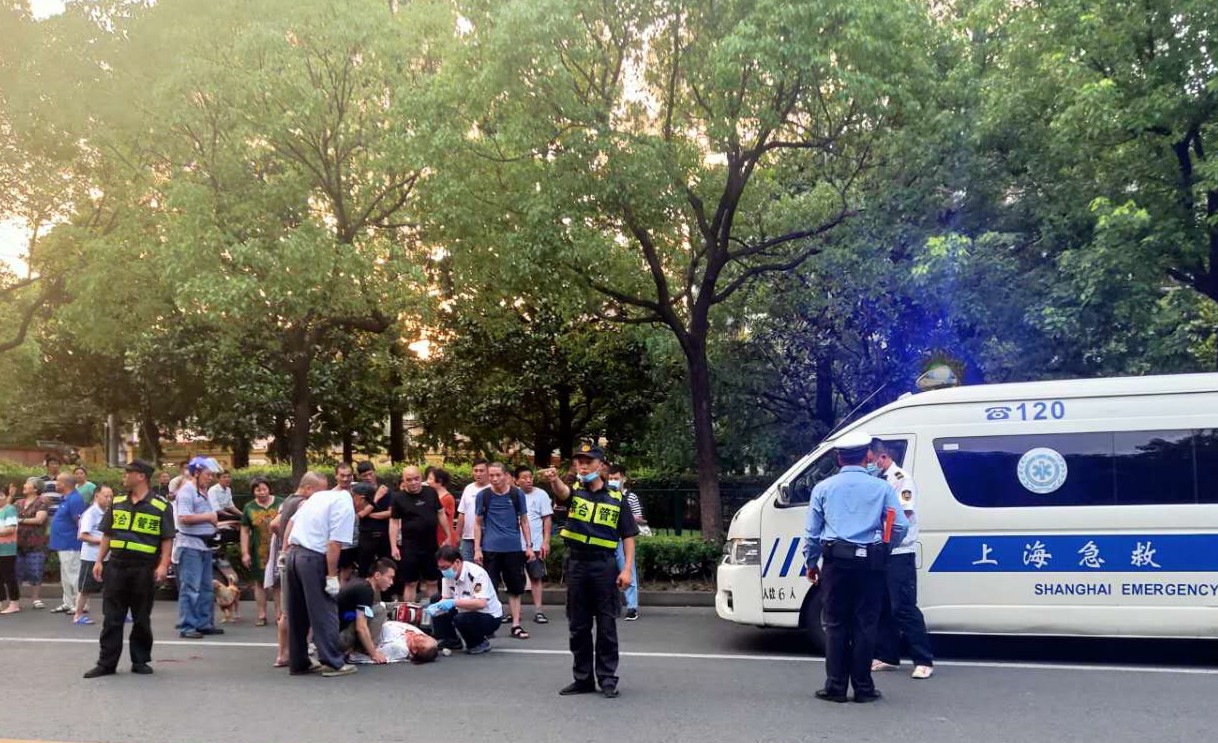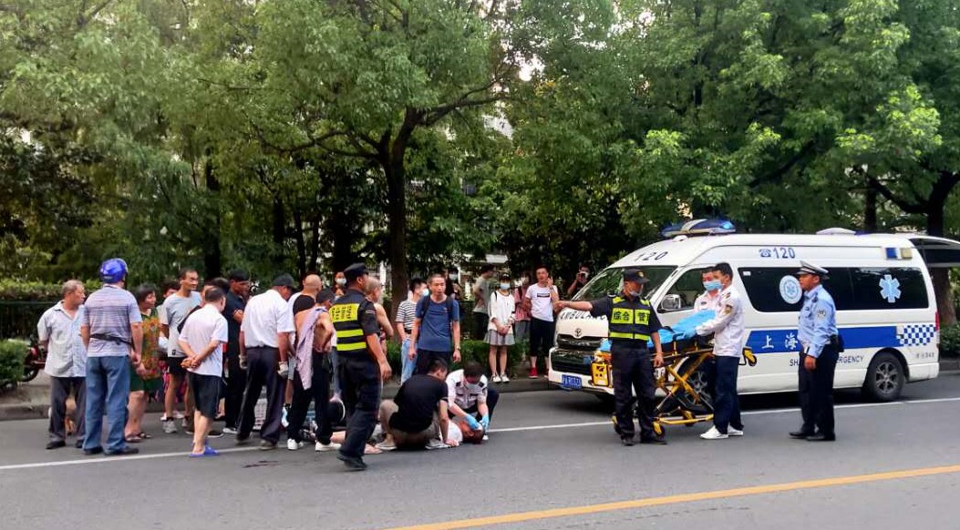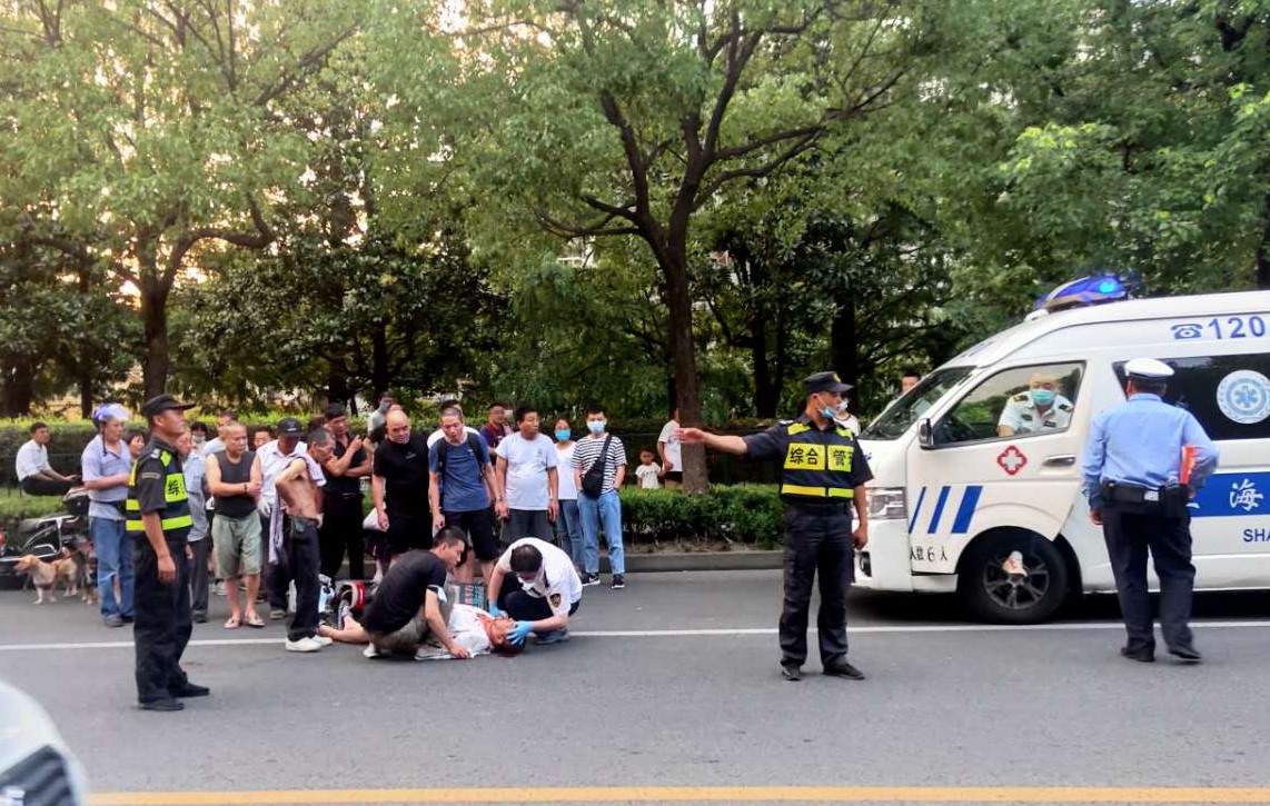 7月24日18:30,宗保公司駐三林市容項目隊員張治付等三名隊員巡邏至楊思地鐵1號口東30米時(shí),遇到一起突發(fā)的交通事故。