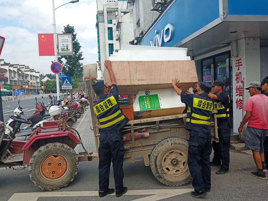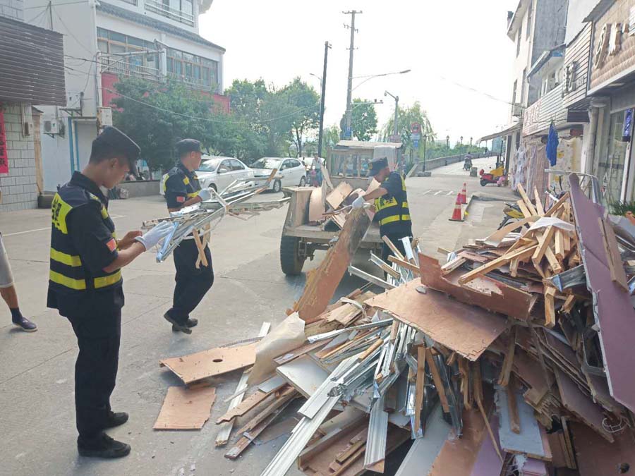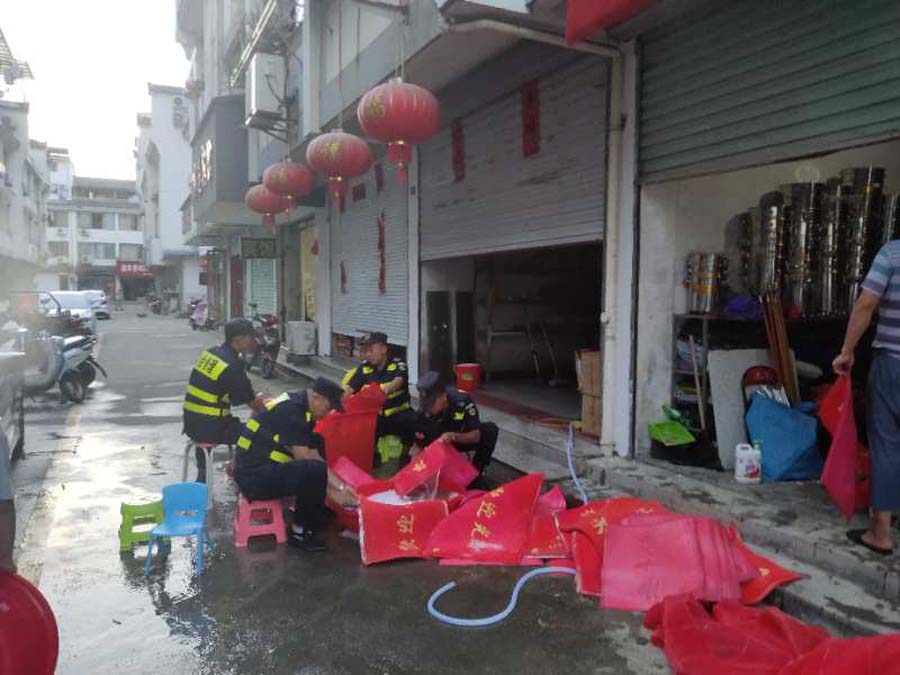 7月20日至8月5日,宗保公司駐歙縣市容項目隊員在城管局的帶領(lǐng)下,共幫助鴻基商貿城34家商戶(hù),清洗店鋪受災貨物2300余件;幫助鴻基商貿城、徽州花苑受災店鋪清理垃圾66車(chē)。