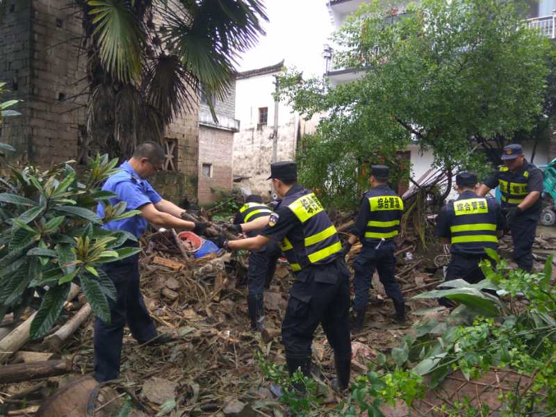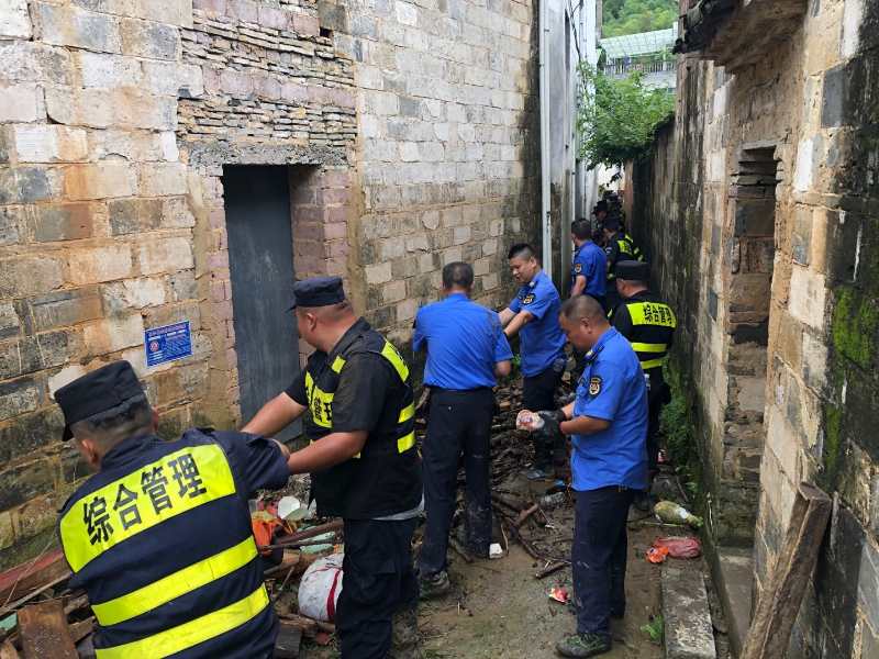 宗保公司駐休寧市容項目全體人員積極響應縣城管執法局號召,先后出動(dòng)200余人次,不分晝夜、連續奮戰,參加防汛排澇、護航學(xué)子高考、進(jìn)行災后重建。