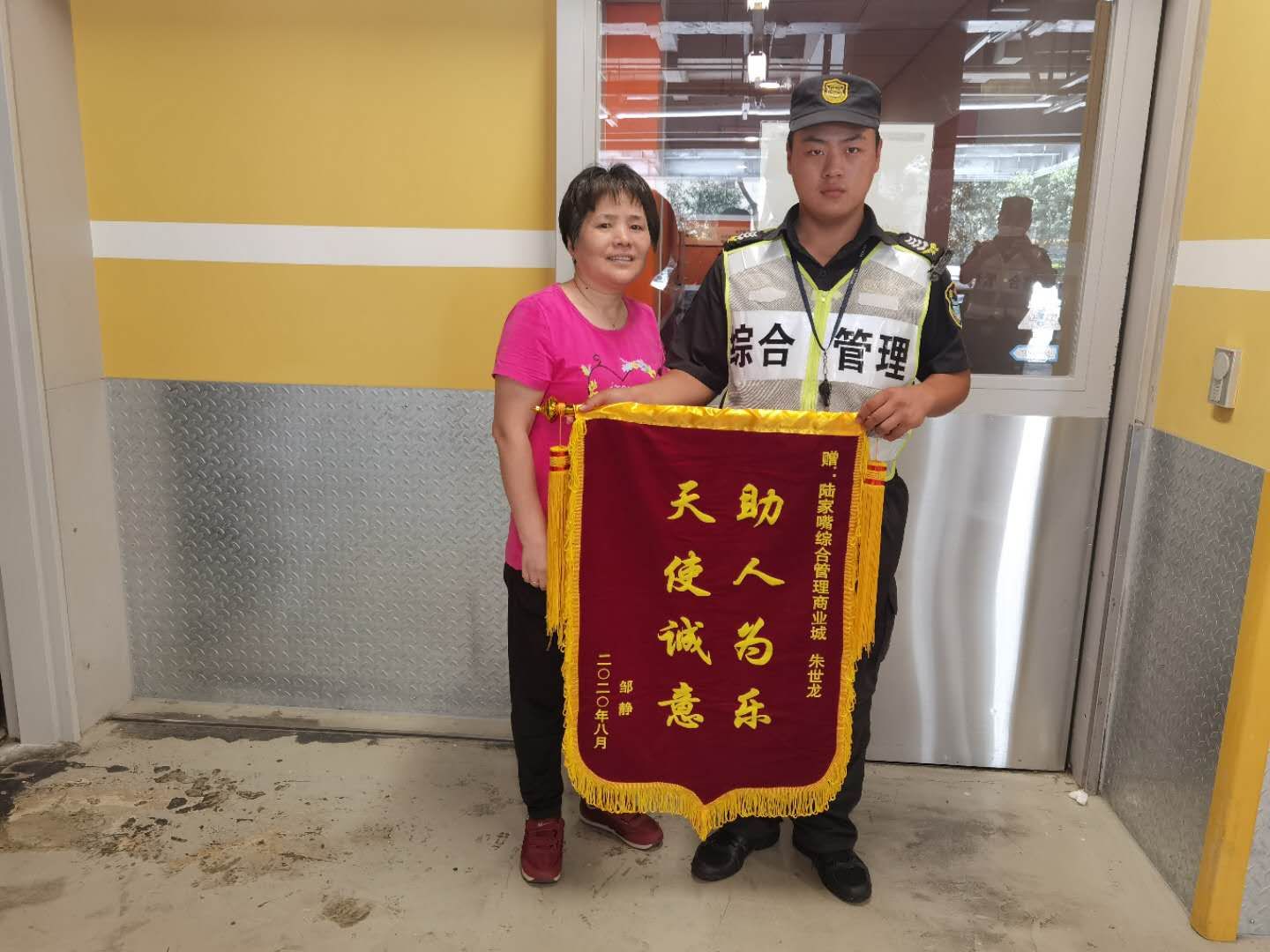 8月25日,一面繡有“助人為樂(lè ),天使誠意”的錦旗送到了宗保公司駐陸家嘴綜合管理項目朱世龍手中,并合影紀念。