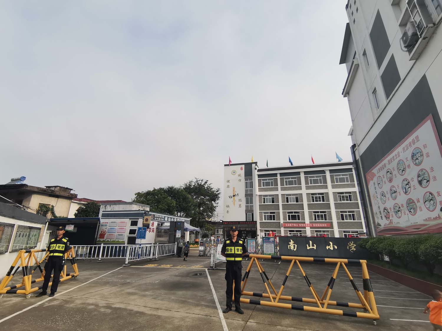 根據甲方要求,結合當地天氣情況,綜合臺風(fēng)等突發(fā)因素的影響,公司選派人員參與早晚高峰的護校工作,做好學(xué)校周邊區域的治安和交通狀況巡查,加強上學(xué)和放學(xué)時(shí)間段的管理,全力維護學(xué)校正常教學(xué)和生活秩序。