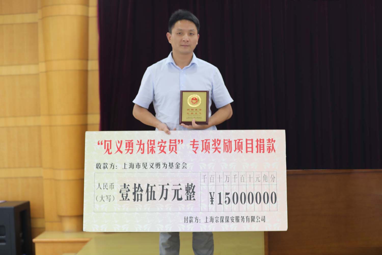 宗保公司出資15萬(wàn)捐贈上海市見(jiàn)義勇為基金會(huì ),用于獎勵活動(dòng)平臺的建設,董事長(cháng)馮中保上臺領(lǐng)取捐贈證書(shū);公司隊員趙崇博被評為2020年度見(jiàn)義勇為保安員并上臺領(lǐng)獎。