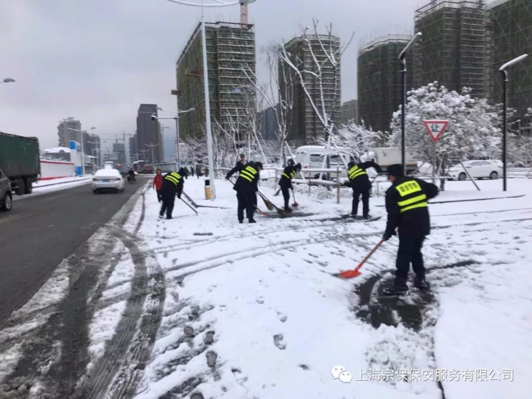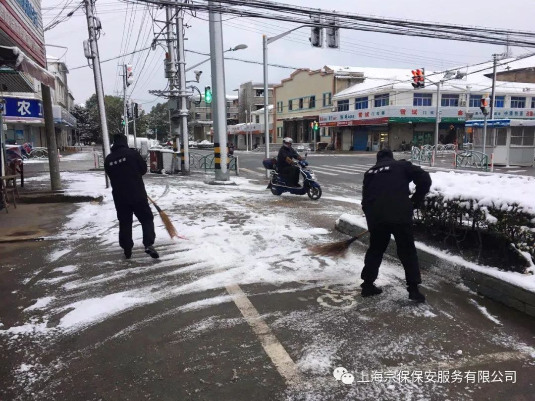 宗保人朋友圈報道:近日,上海、杭州等地連降大雪,造成路面積雪,影響交通出行。上海宗保保安服務(wù)有限公司以及旗下浙江民泰保安服務(wù)有限公司紛紛發(fā)動(dòng)隊員上街清掃積雪,為附近居民交通出行提供了便利,受到人民群眾的高度稱(chēng)贊。請看可愛(ài)的“宗保人”靚麗的身影: