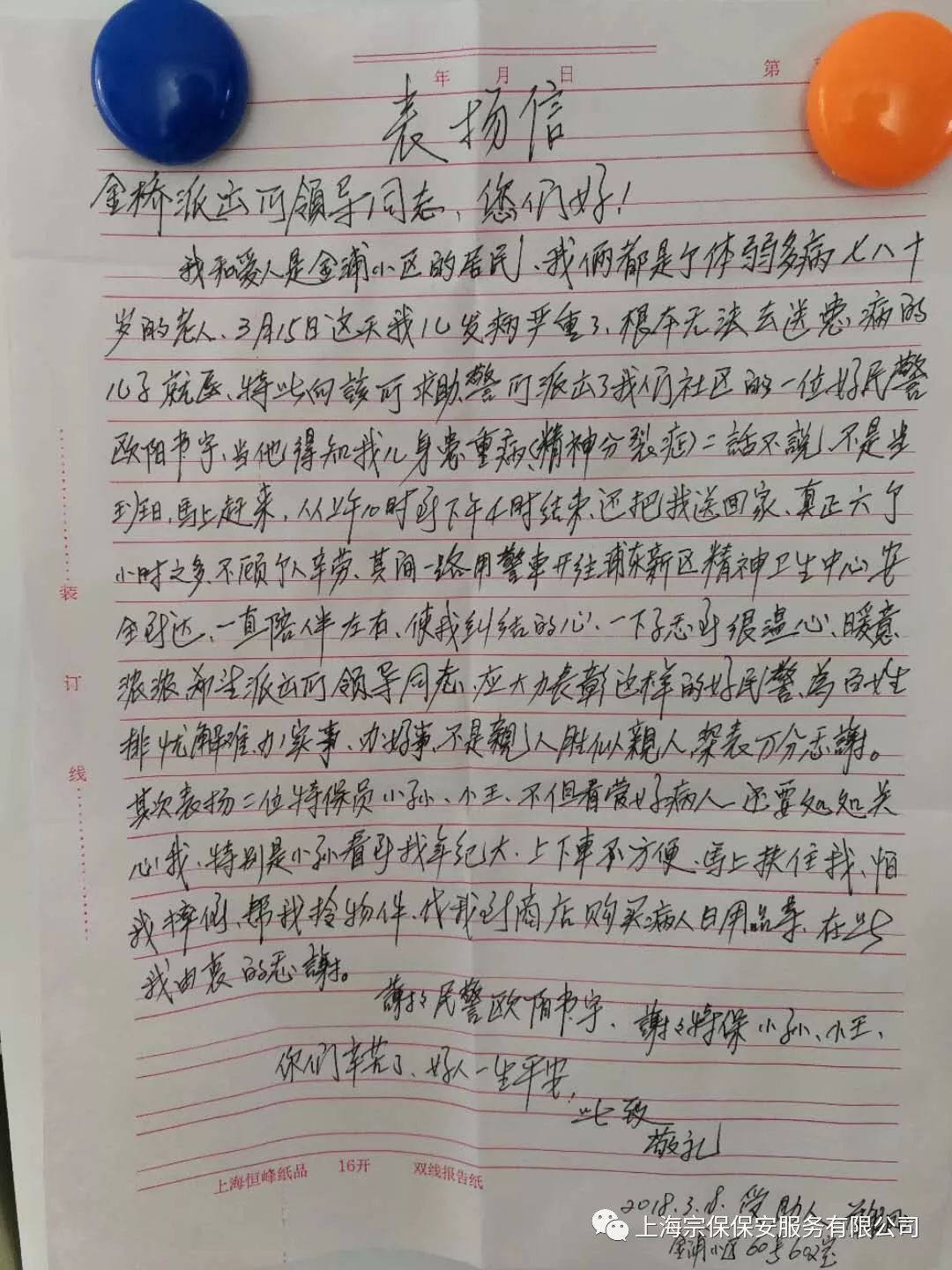 第二天清晨,老太太特意去金橋派出所送去表?yè)P信,感謝兩位隊員對自己的幫助。