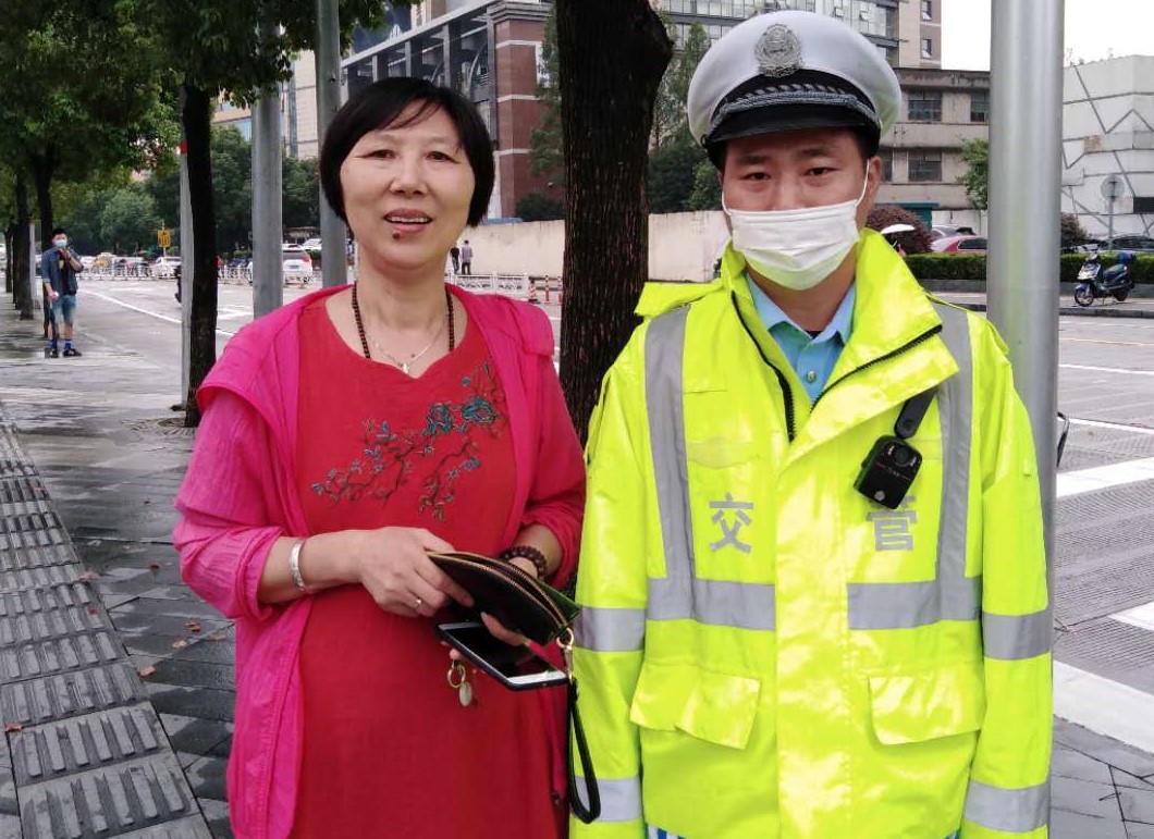 9月18日,閔行虹橋交管輔警項目隊員馮琳琳撿到黑色皮包歸還失主,獲得贊揚。