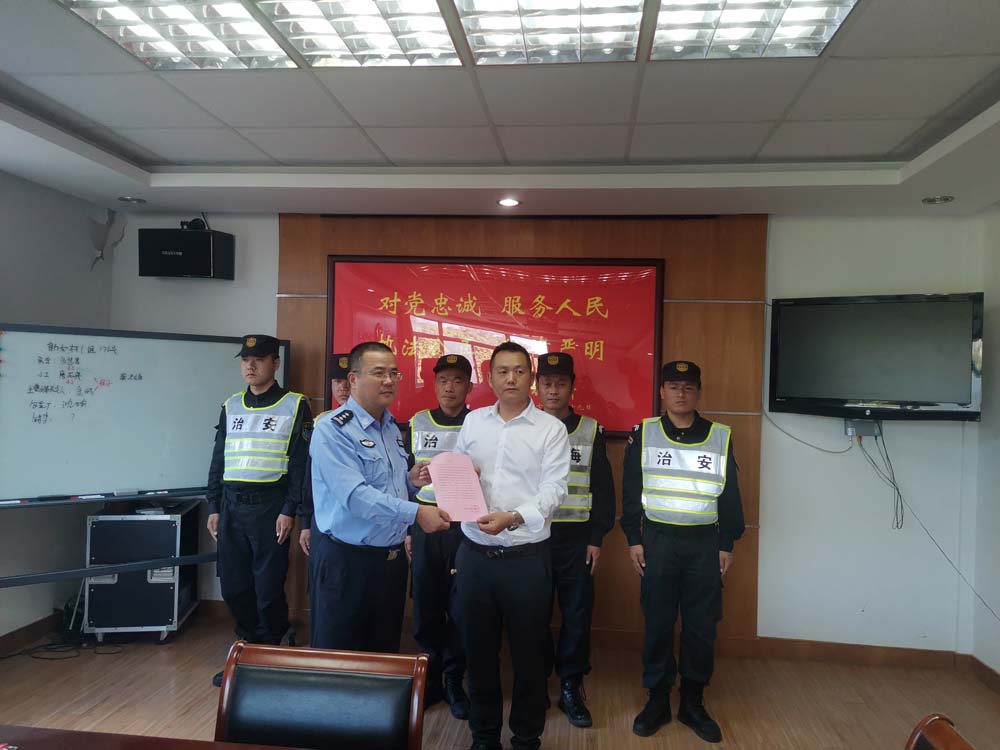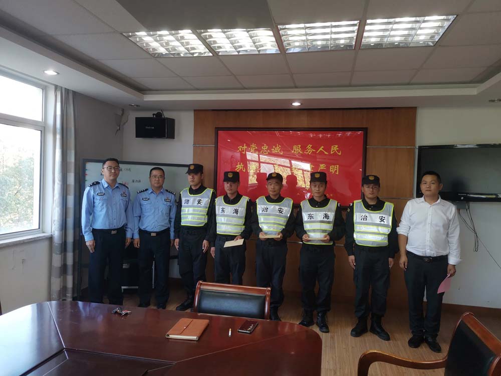 東海派出所領(lǐng)導組織項目全體隊員開(kāi)會(huì ),對宗保隊員勇敢、機智、認真負責、踏實(shí)肯干的精神給予了高度評價(jià),對表現突出的五名隊員進(jìn)行獎勵,并給宗保公司送去表?yè)P信以示鼓勵。