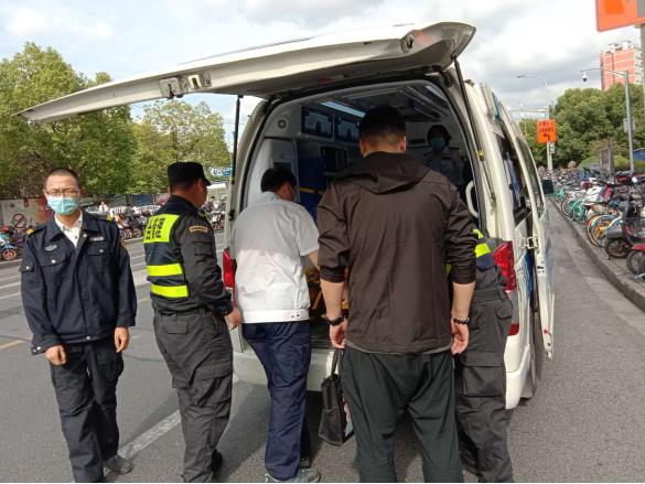 隊員立即撥打120急救電話(huà)和派出所內部電話(huà)請求援助,并上報項目負責人,很快,120救護車(chē)趕到,隊員幫助醫護人員將傷者抬到救護車(chē)上。