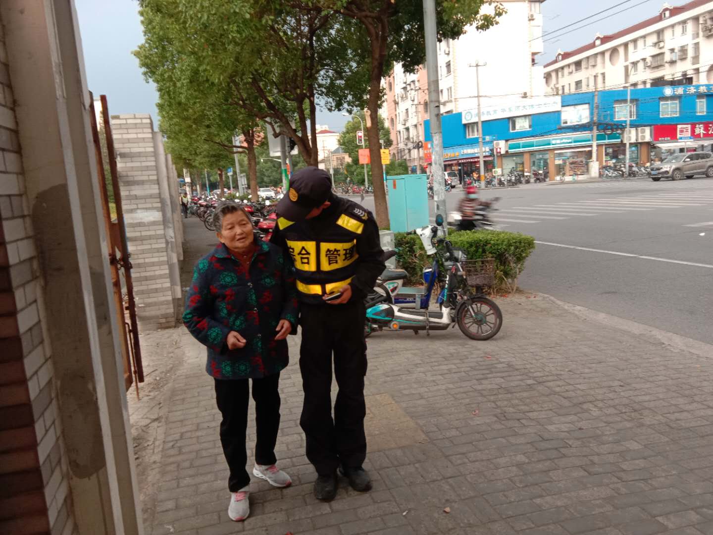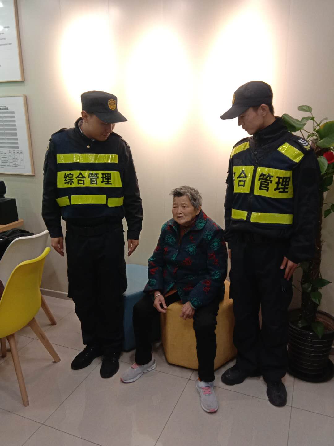 10月22日,宗保公司駐三林市容項目隊員范金元、張宇振送迷路老人回家。