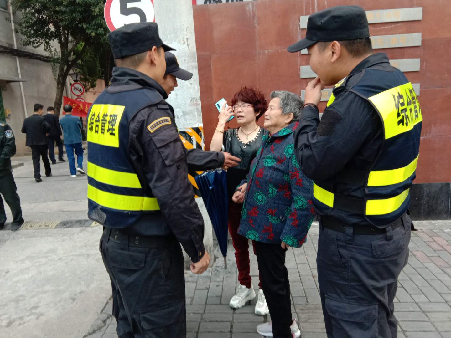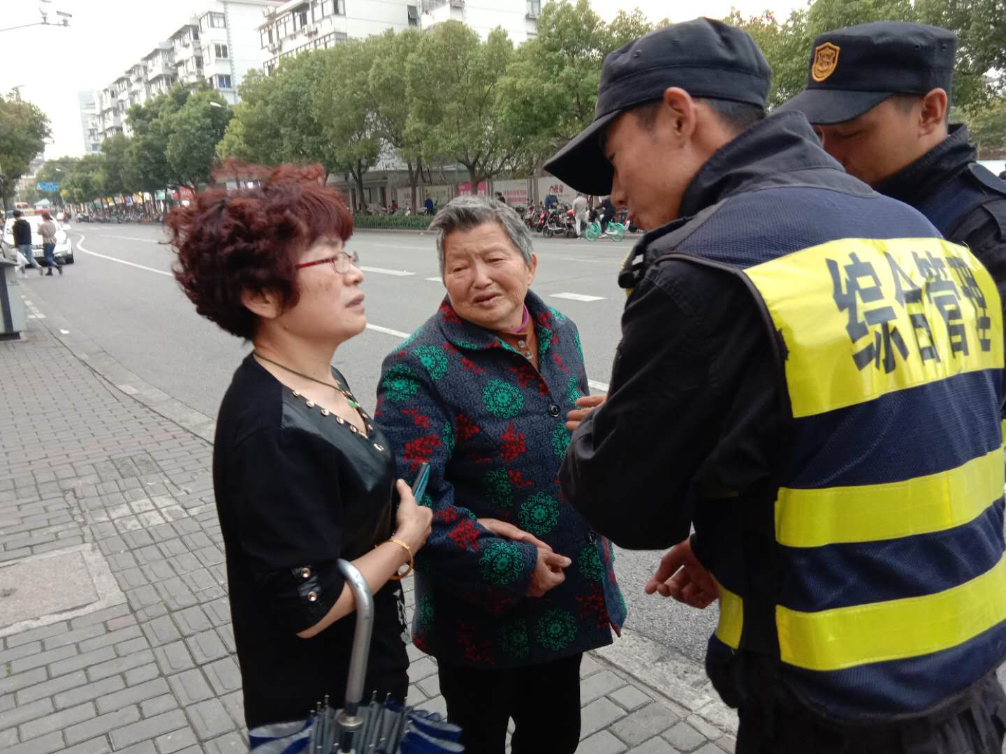 10月28日,宗保公司駐周浦市容隊員王俏麗、任明強積極幫助求助老人。