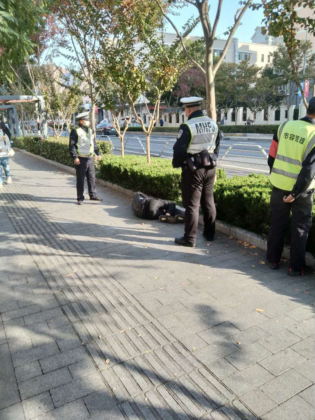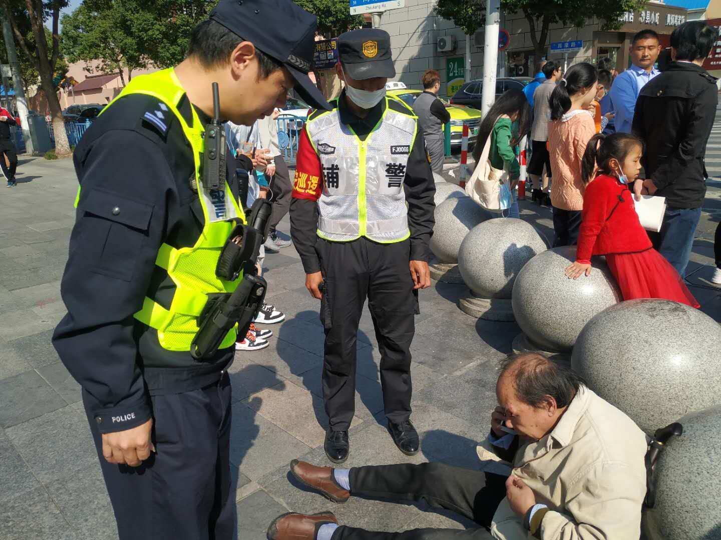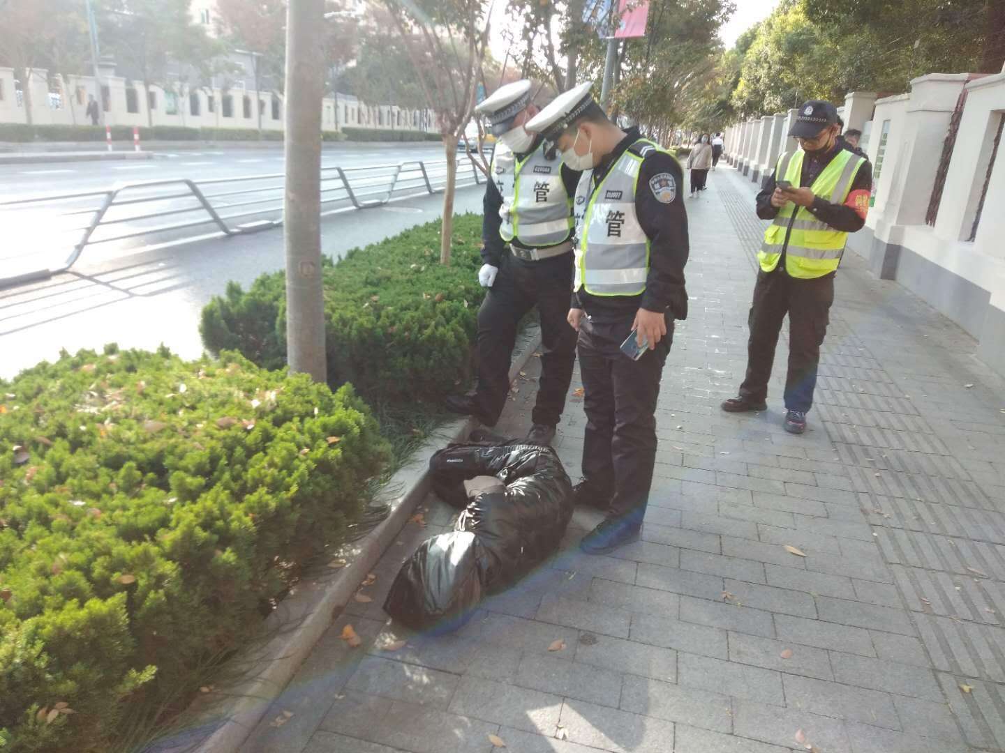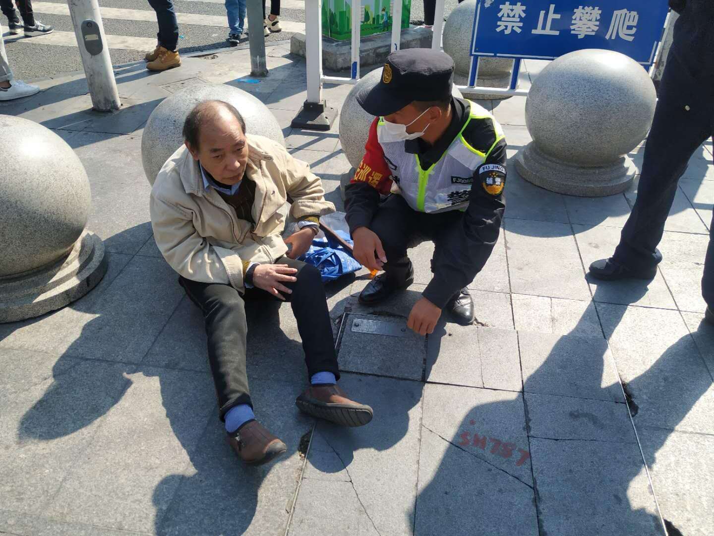 男子暈倒在地 輔警積極救助---—閔行新虹街道交管輔警幫助暈倒男子就醫