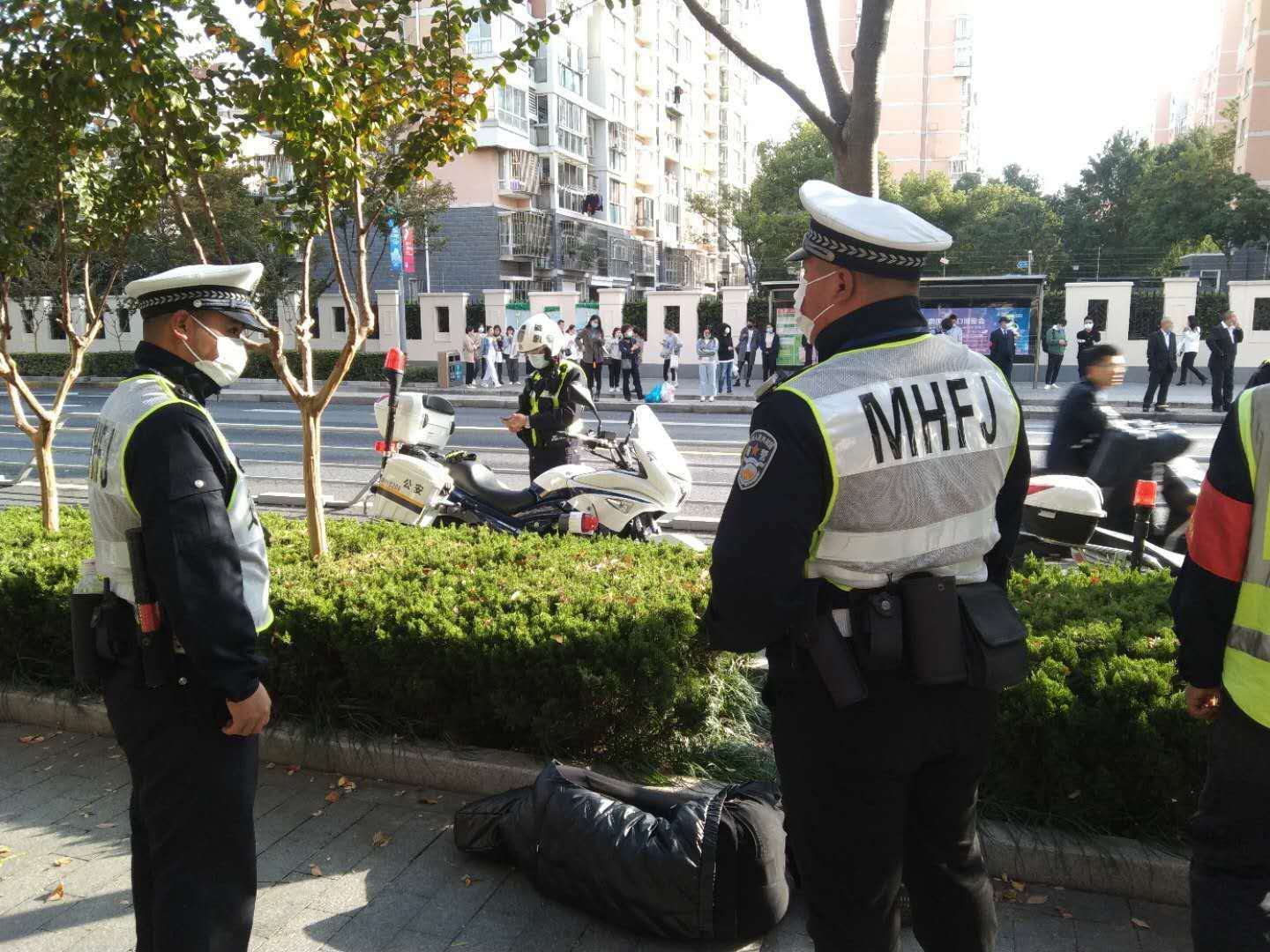 11月3日,宗保公司駐閔行新虹街道交管輔警項目隊員幫助暈倒男子就醫。