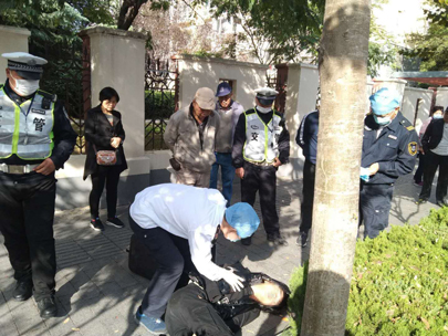 當天16:20,宮建華、李騰騰在廣場(chǎng)外圍巡邏時(shí),發(fā)現一位老人摔倒在地,表情十分痛苦,便立即上前查看詢(xún)問(wèn),老人的身體狀況不是很好。