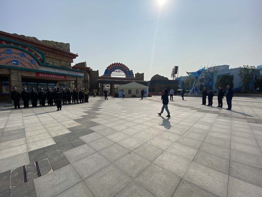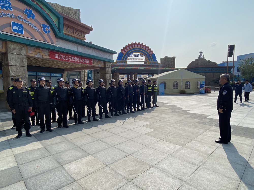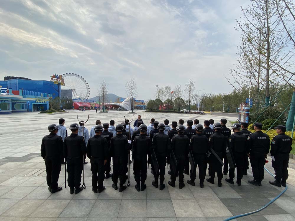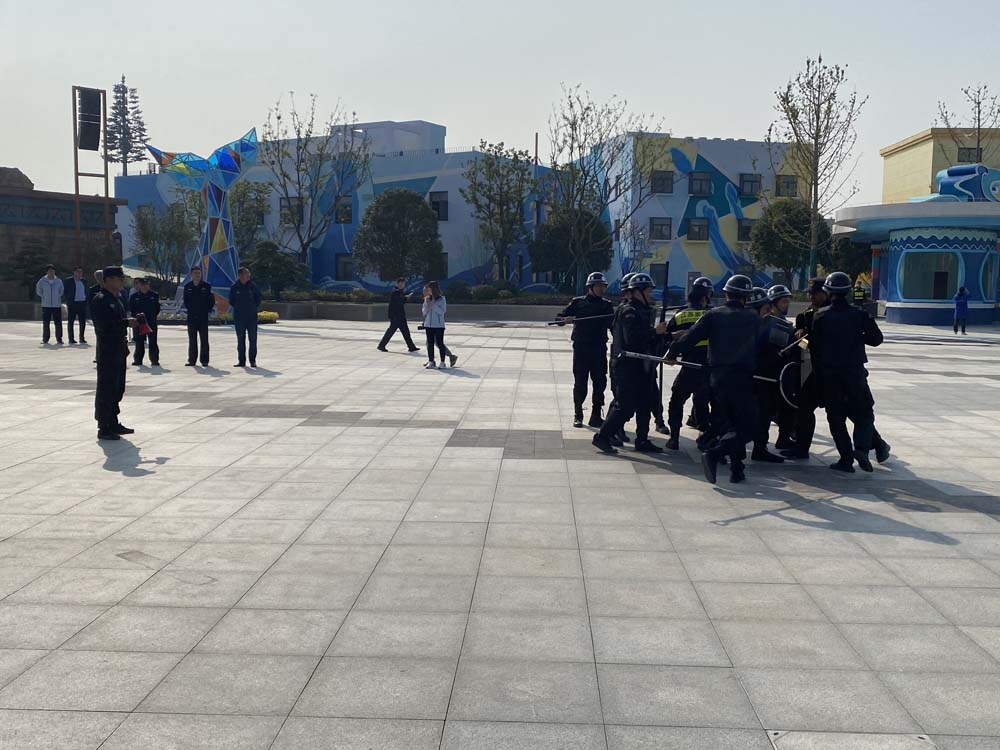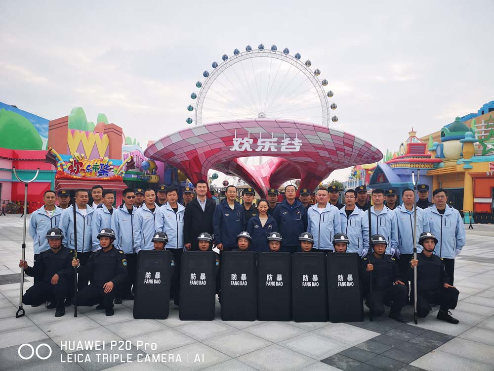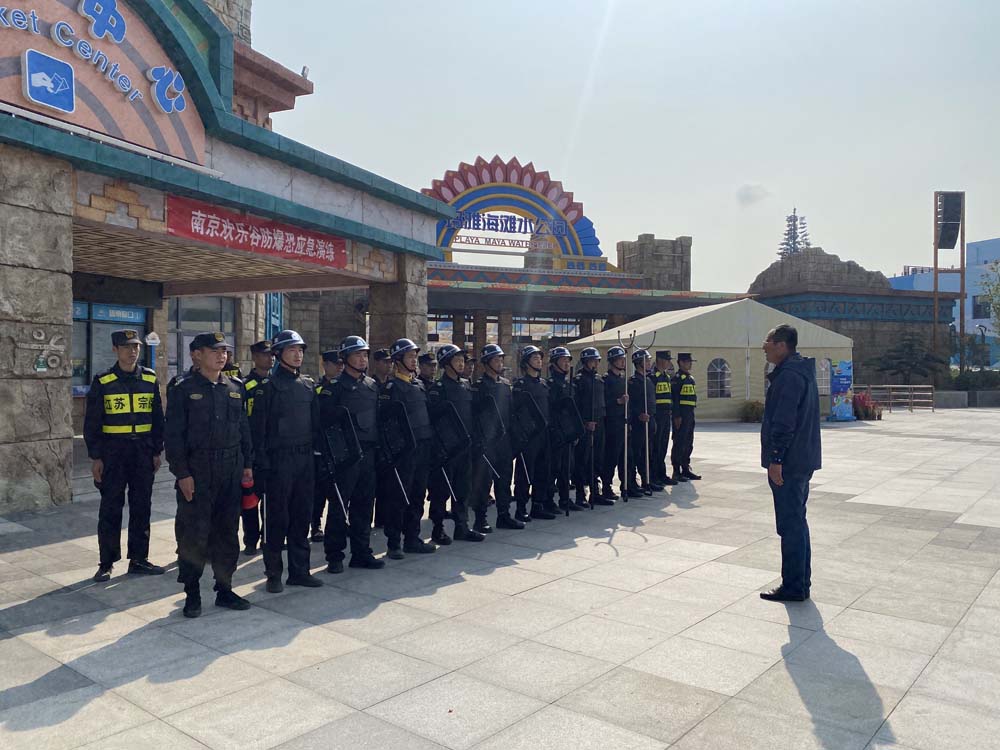 當天,南京市棲霞派出所副所長(cháng)張玉、南京華僑城歡樂(lè )谷副總經(jīng)理董本麗等一行,現場(chǎng)觀(guān)摩指導公司駐歡樂(lè )谷項目隊員防暴恐應急演練。