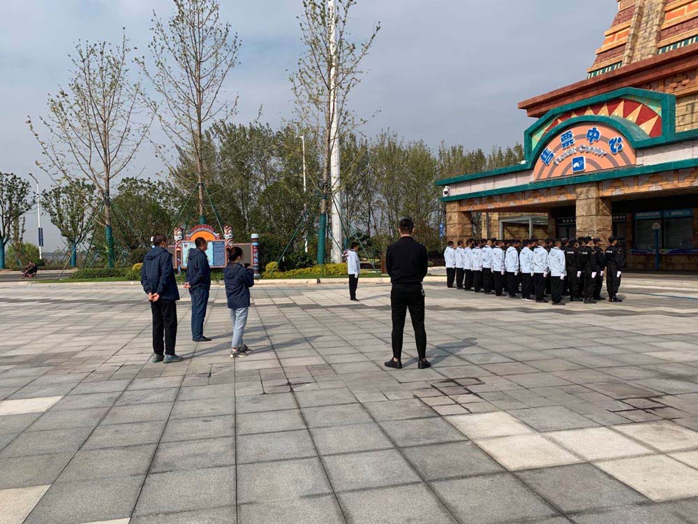 10月20日,華僑城歡樂(lè )谷副總經(jīng)理董本麗一行到歡樂(lè )谷前廣場(chǎng)觀(guān)摩宗保公司南京分公司駐華僑城歡樂(lè )谷項目隊員訓練成果。