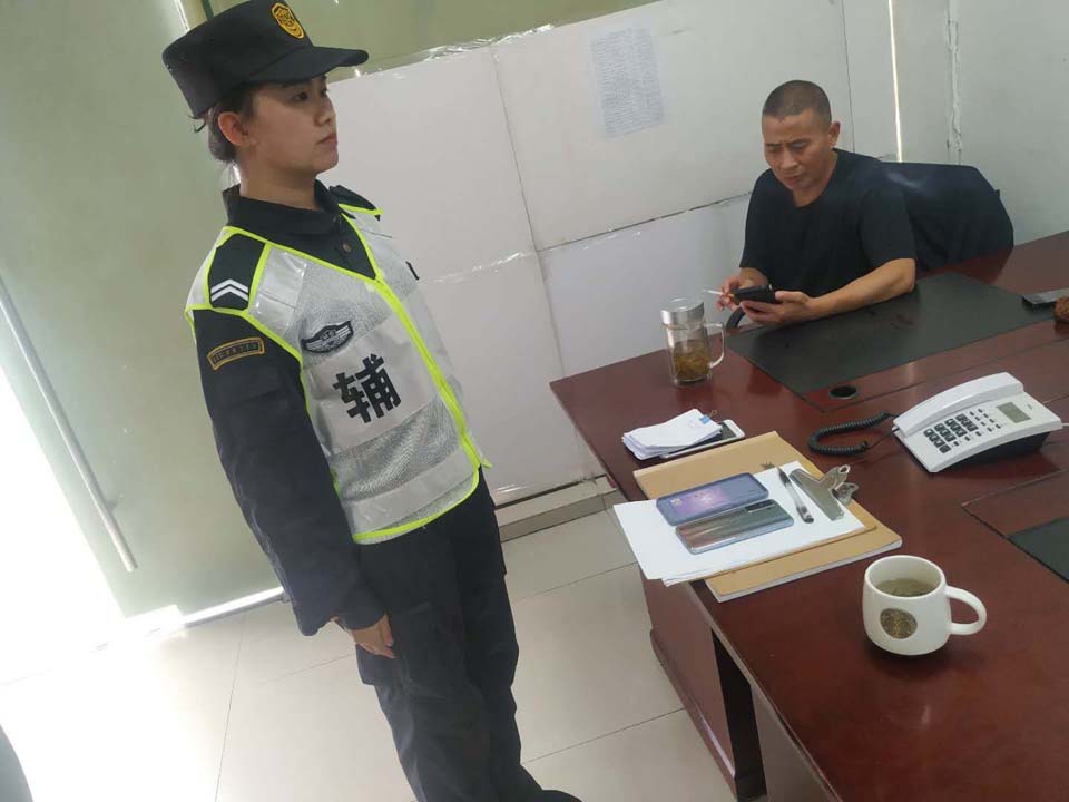半個(gè)小時(shí)過(guò)去了,仍不見(jiàn)失主前來(lái)尋找,隊員便上報帶班組長(cháng),按指示將手機送到萬(wàn)達警務(wù)室報備。