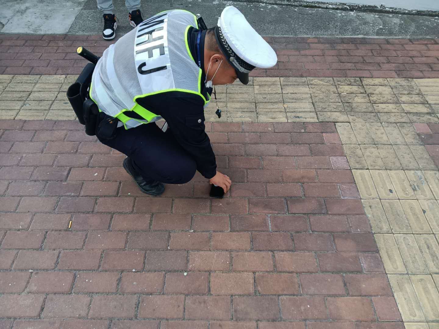 隊長(cháng)到現場(chǎng)拍照取證,隨后和聶莊飛一起在原地等待,半小時(shí)左右,失主到現場(chǎng)尋找鑰匙。