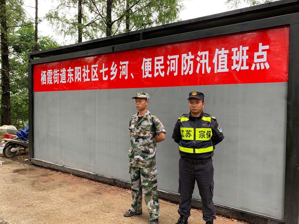 11月12日,南京市棲霞區棲霞街道武裝部副部長(cháng)彭武平為上海宗保保安服務(wù)有限公司南京分公司送來(lái)繡有“履行新使命 抗洪當先鋒”的錦旗。