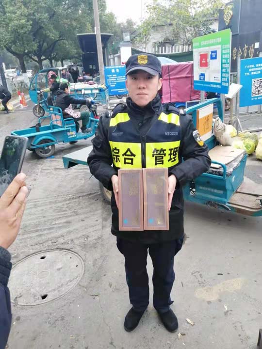 當天11:35,楊洪在紅豐路巡邏時(shí),在小芳超市向東約30米處撿到兩盒靈芝,便立即按照工作流程上報當班組長(cháng),并按照指示在原地等待失主。